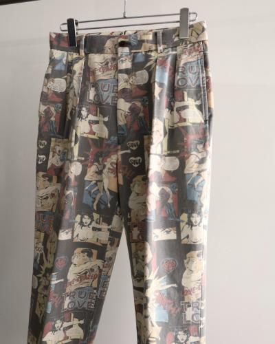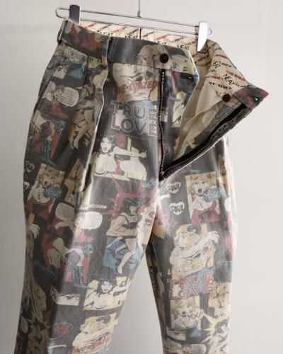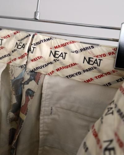 KEITA MARUYAMAとのコラボレーションモデル。過去のコレクションで使用していた生地柄をNEATで人気のNEAT Chinoモデルに落とし込んでおります。顔料プリントで洗いの加工を施しており、雰囲気のいいフェード感が特徴的です。顔料プリントの為、履き込んでいくとさらにフェード感が増していきます。本コラボレーションモデルの為に作製したマーベルトもポイントです。