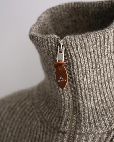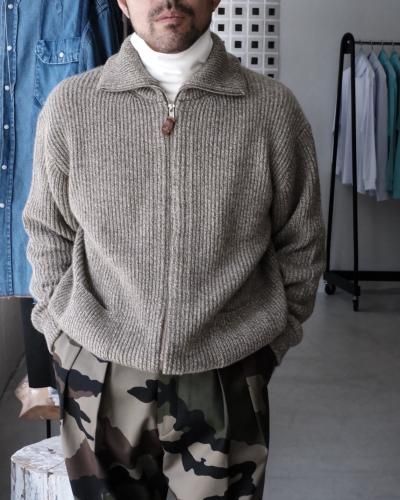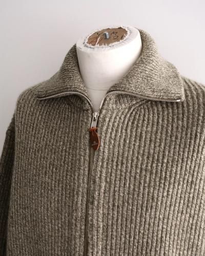非常に肉厚でアウターとしても活躍するドライバーズニットで、さらにダブルジップ仕様で様々な着こなしが可能です。