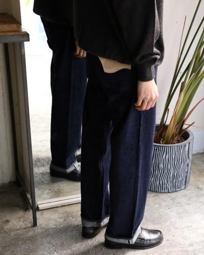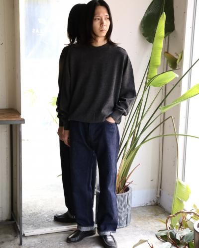20周年を記念して作製された105XX THE 1950S SELVEDGE DENIM。1950年代初期のジーンズを徹底的に分析し、当時のディテールを忠実に再現した一本。1953年製の機械で紡績した糸を旧式のシャットル織機で丁寧に織り上げたデニム生地は、自然なムラ感と深みのある色落ちを楽しめるのが特徴です。縫製には綿糸を使用し、着用を重ねるごとに生地とともに経年変化を遂げ、ヴィンテージ特有の風合いが増していきます。また、当時の製法に倣っているため、穿き込みとともに脇線が右にねじれていく仕様も忠実に再現。1950年代のジーンズに見られる特徴であり、不良ではなく本物の証です。シルエットは定番の「105」と比較してやや太めに設計され、無骨ながらも現代のスタイルにも自然に馴染む絶妙なバランスに仕上がっています。