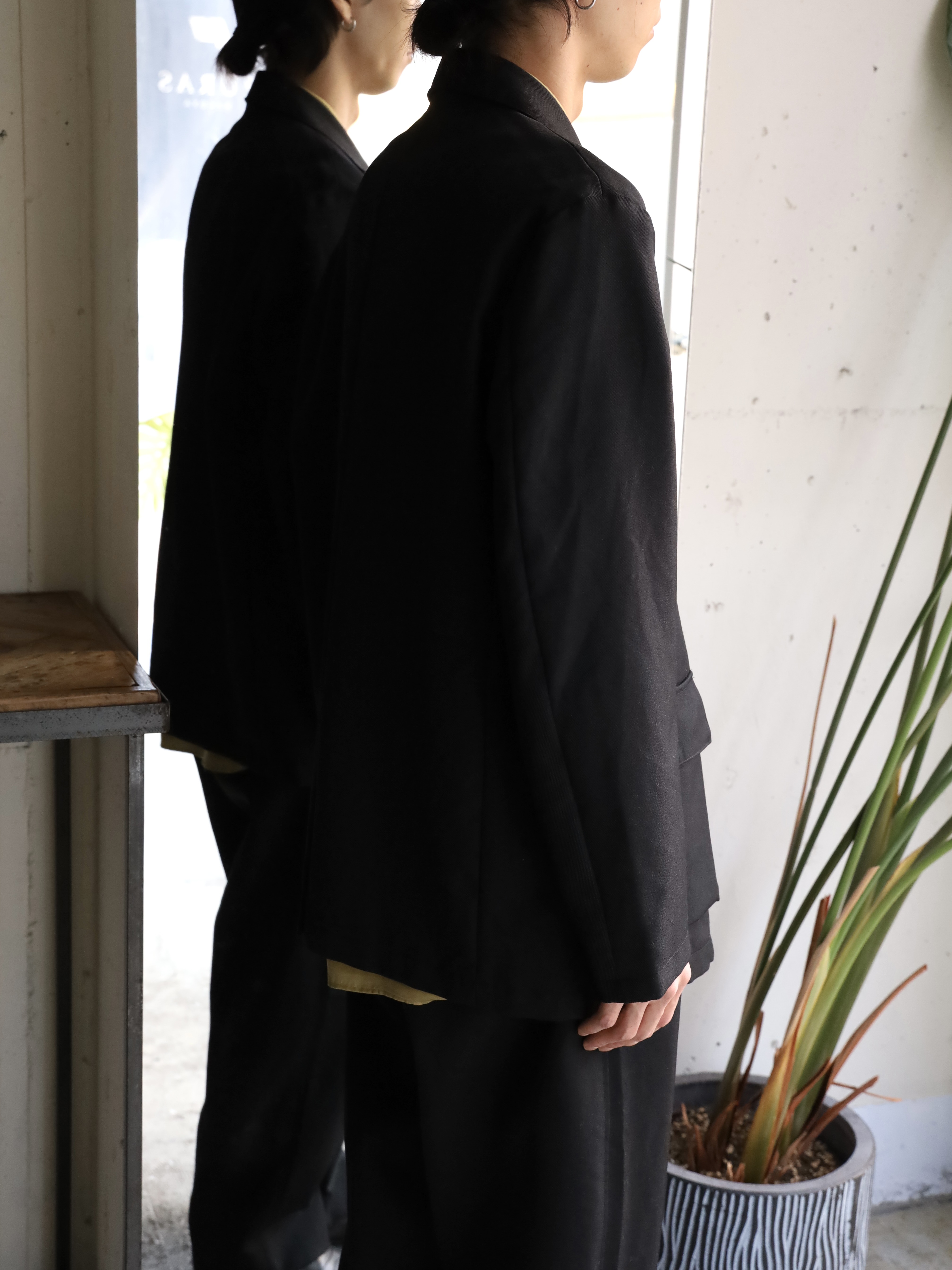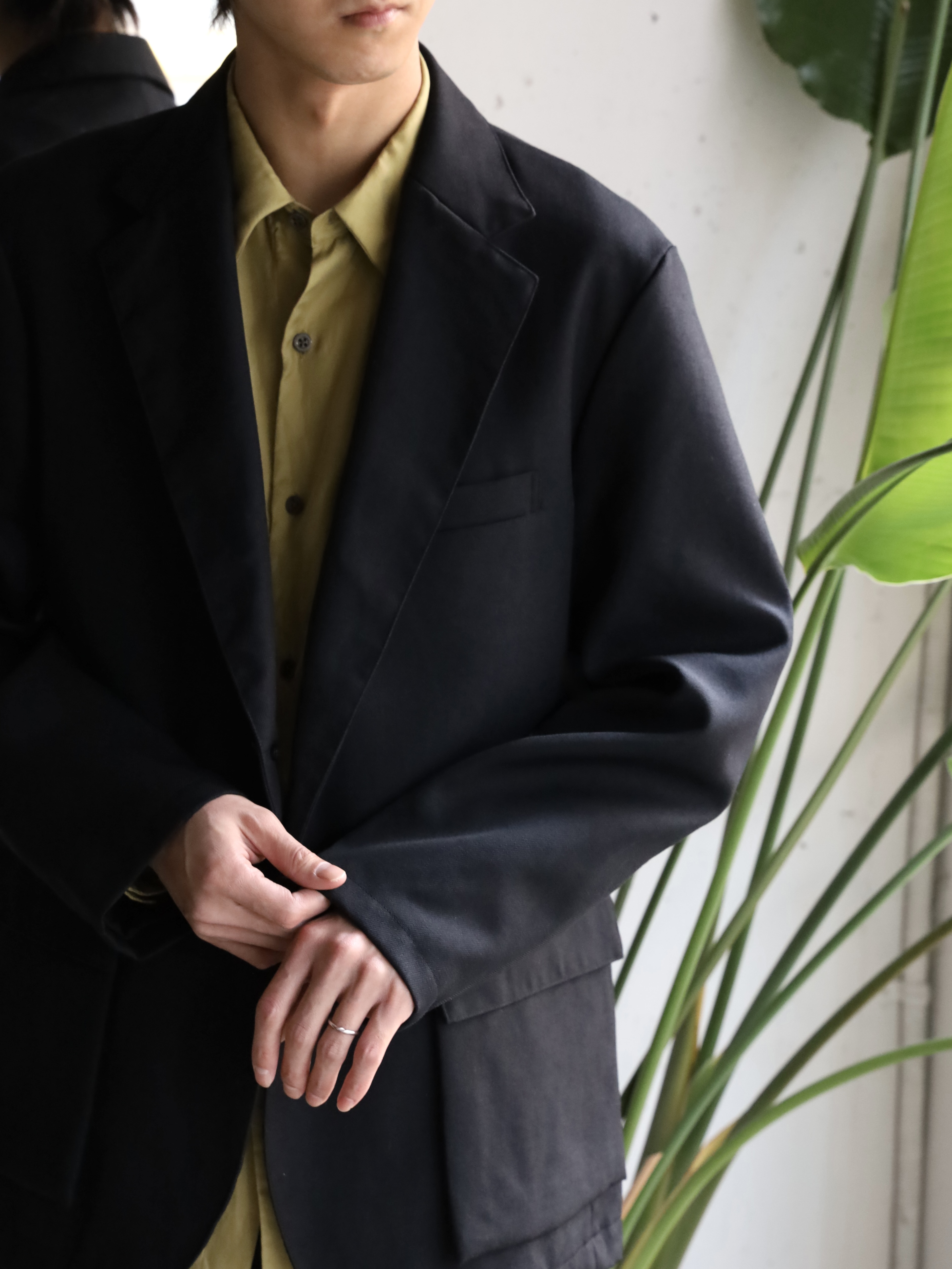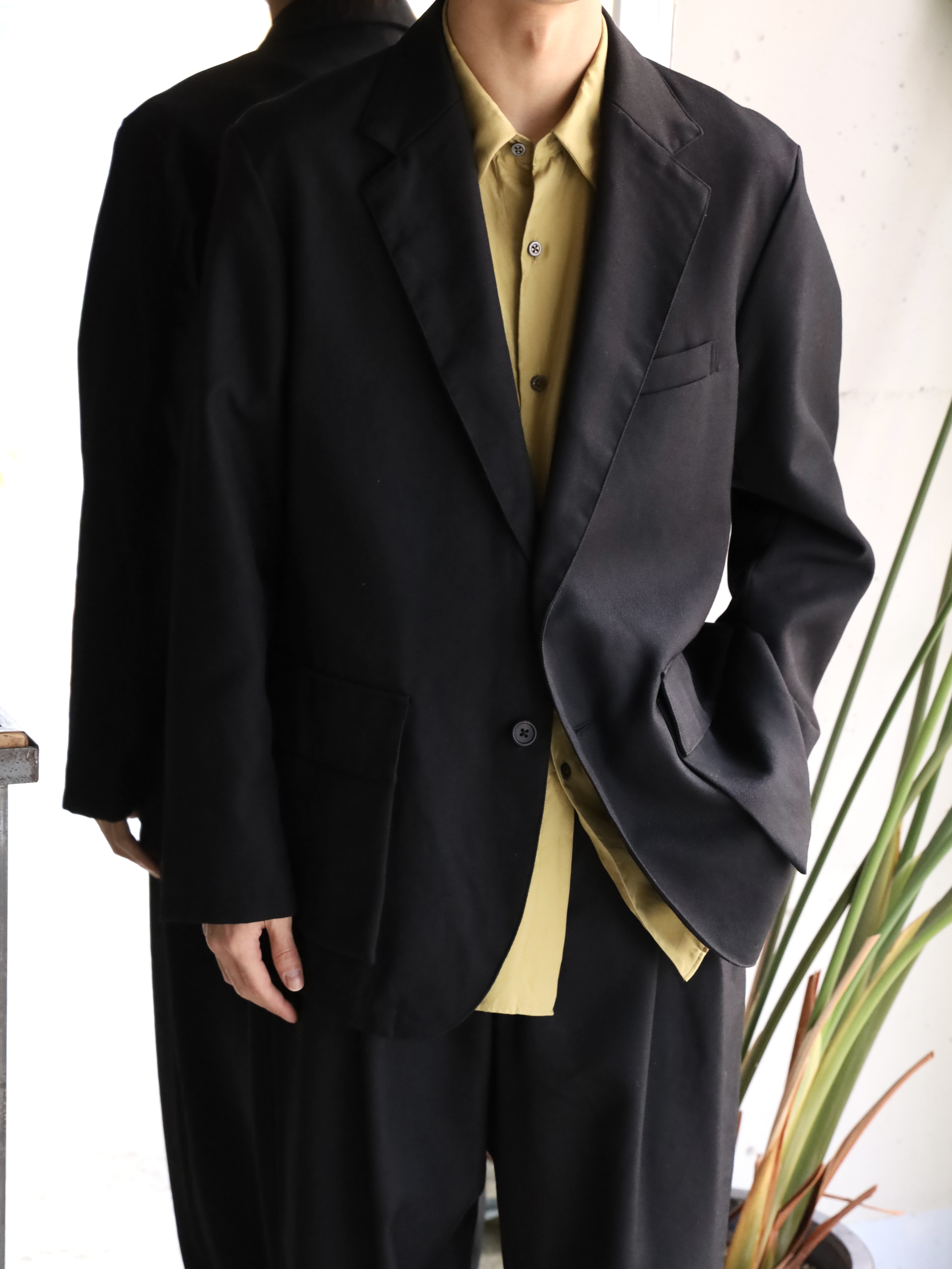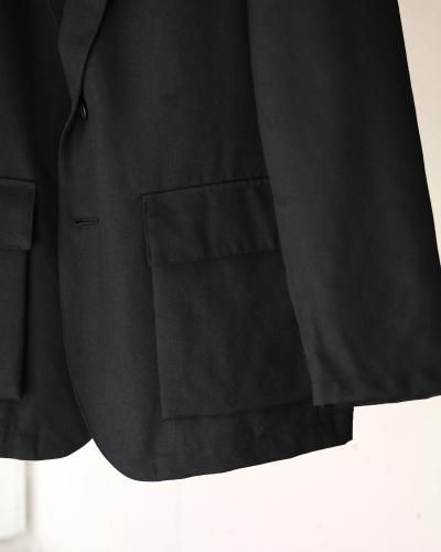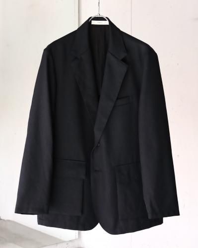 ゆったりとしたシルエットながら独特なバランスの2Bジャケット。大見返し/背裏/袖裏仕立て。マチ付きの腰ポケットがアクセントを担います。半裏仕様でシーズン長くご着用ができるのも嬉しいポイント。ゆったりとしたサイジングで、厚手のインナーも着込みやすく、軽アウターとしてのご使用もおすすめです、生地には、双糸のウールをしっかりと打ち込んだツイルを使用。チンツ加工をすることでタフな雰囲気に仕上げ、製品で洗い加工を加えることで独特な雰囲気に上げています。
