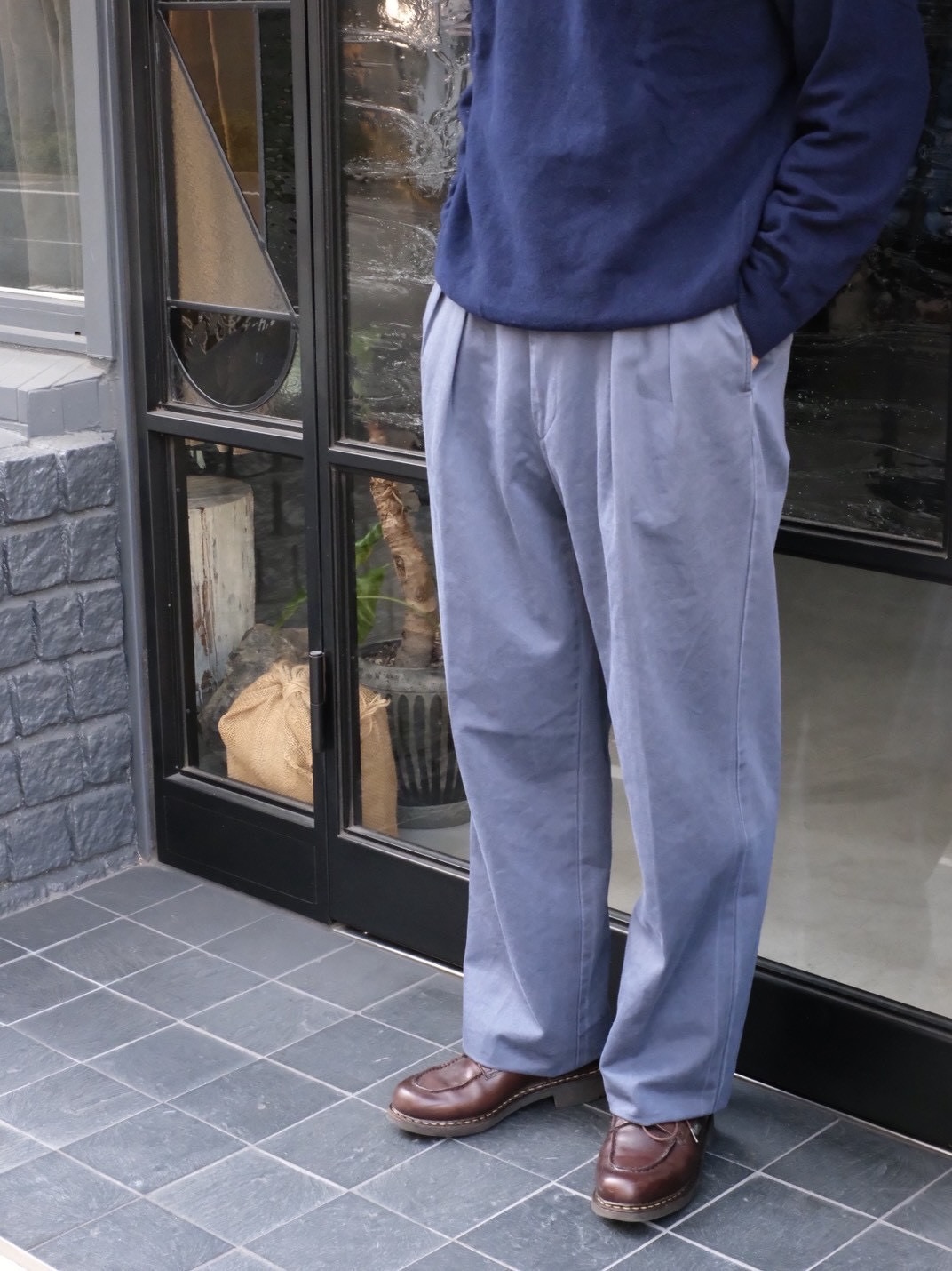 FADE色はブルーに黒顔料(FADE NAVY)を乗せることで経年変化を楽しめる仕上がりにしております。