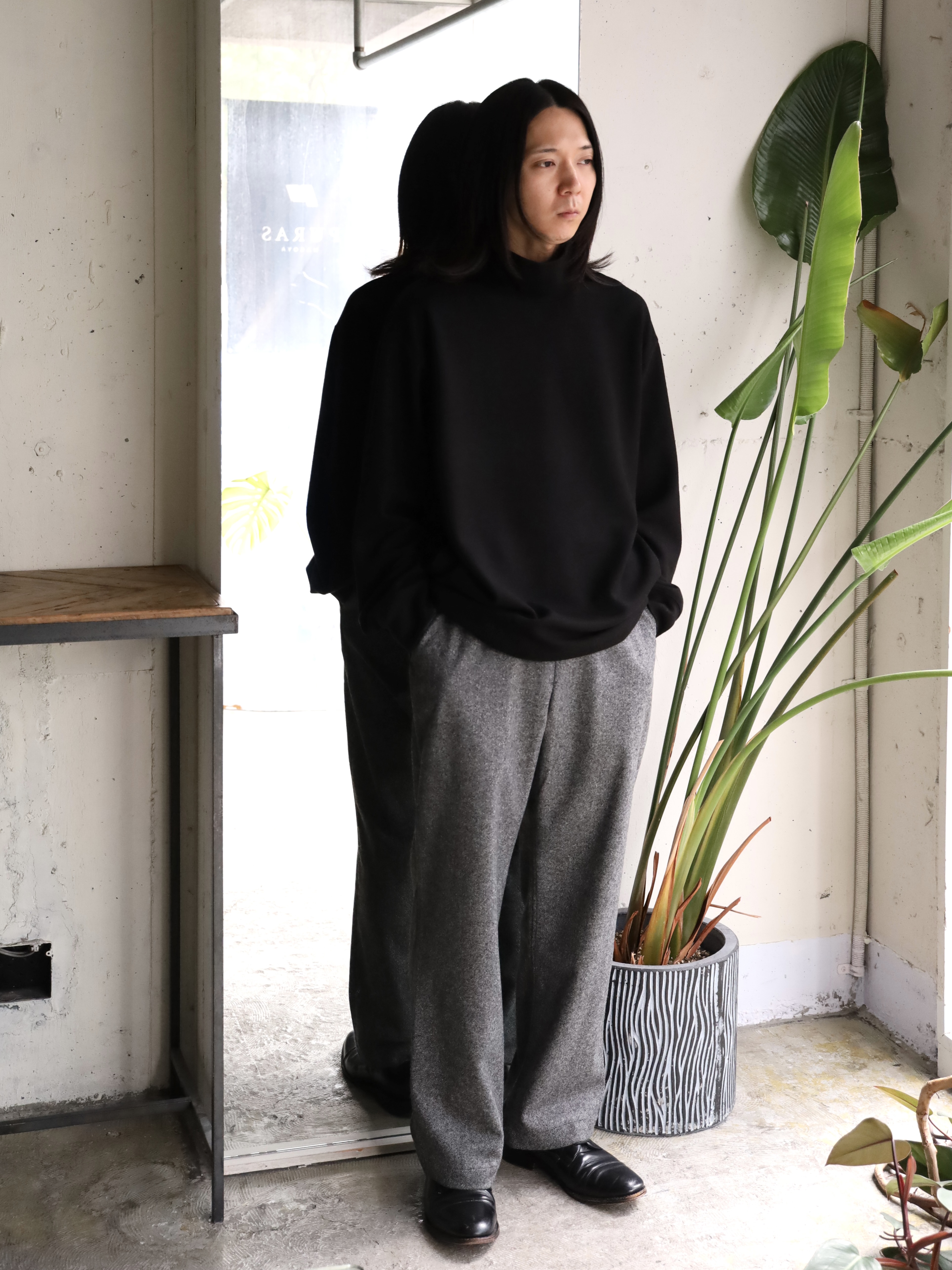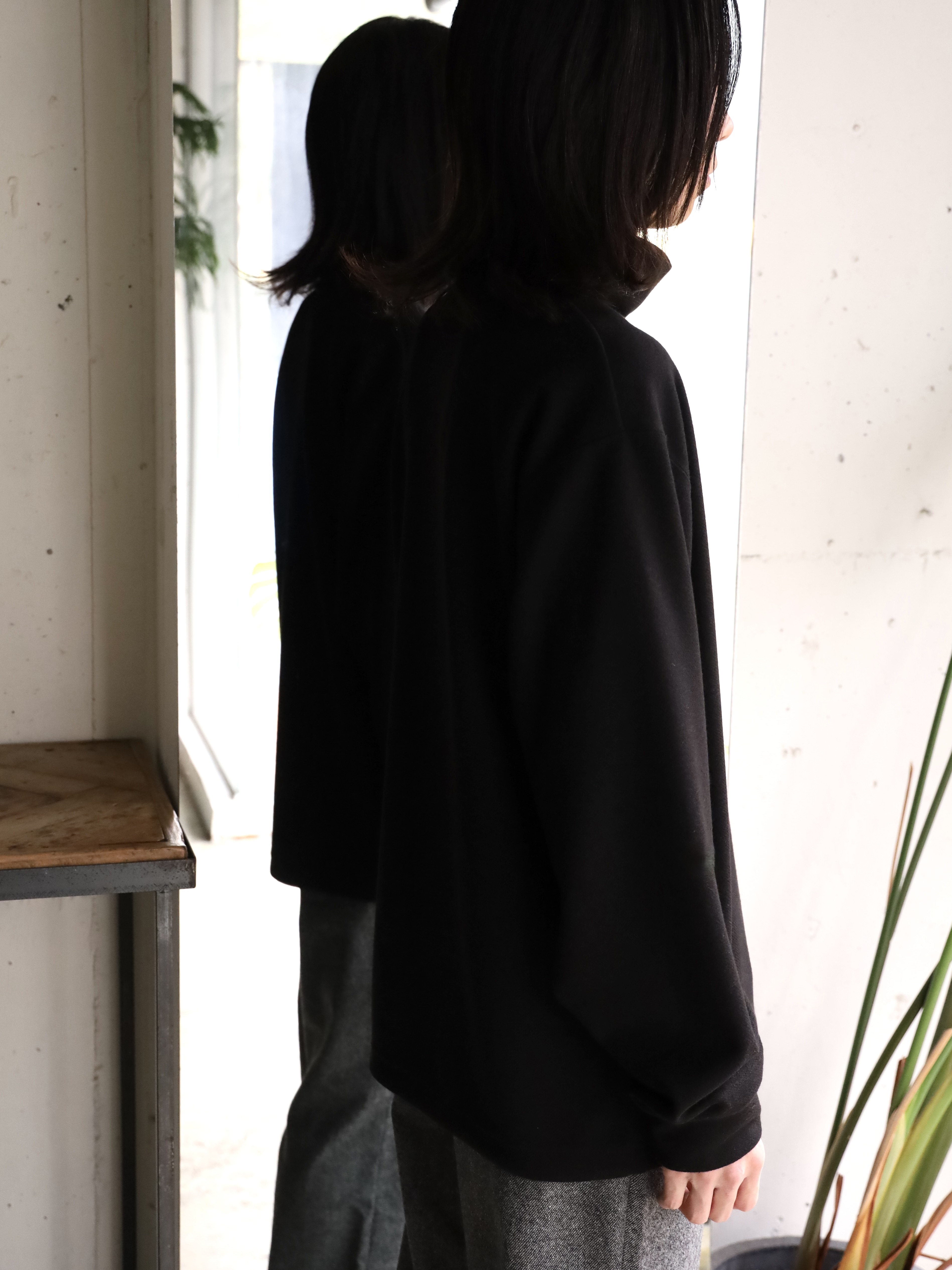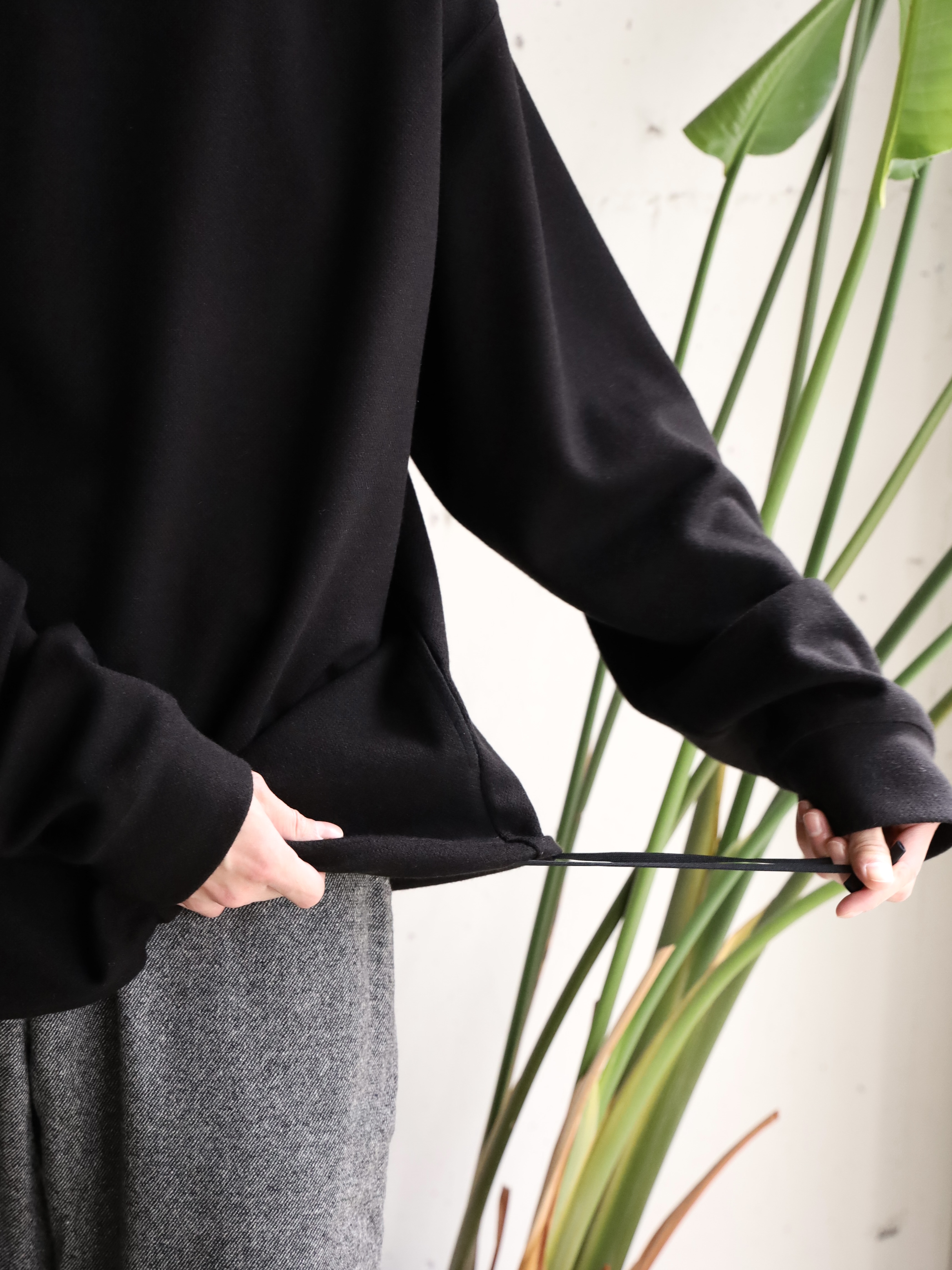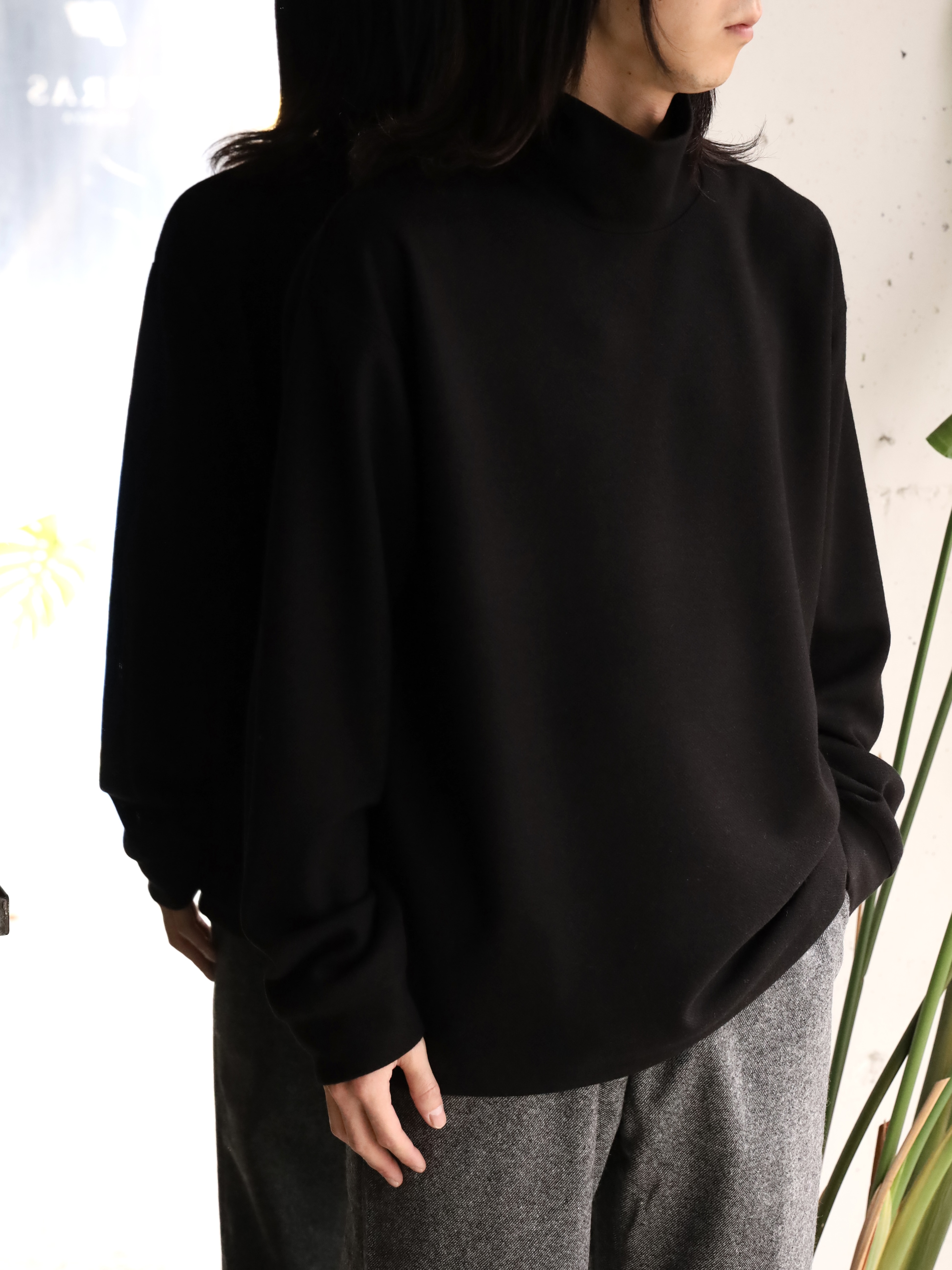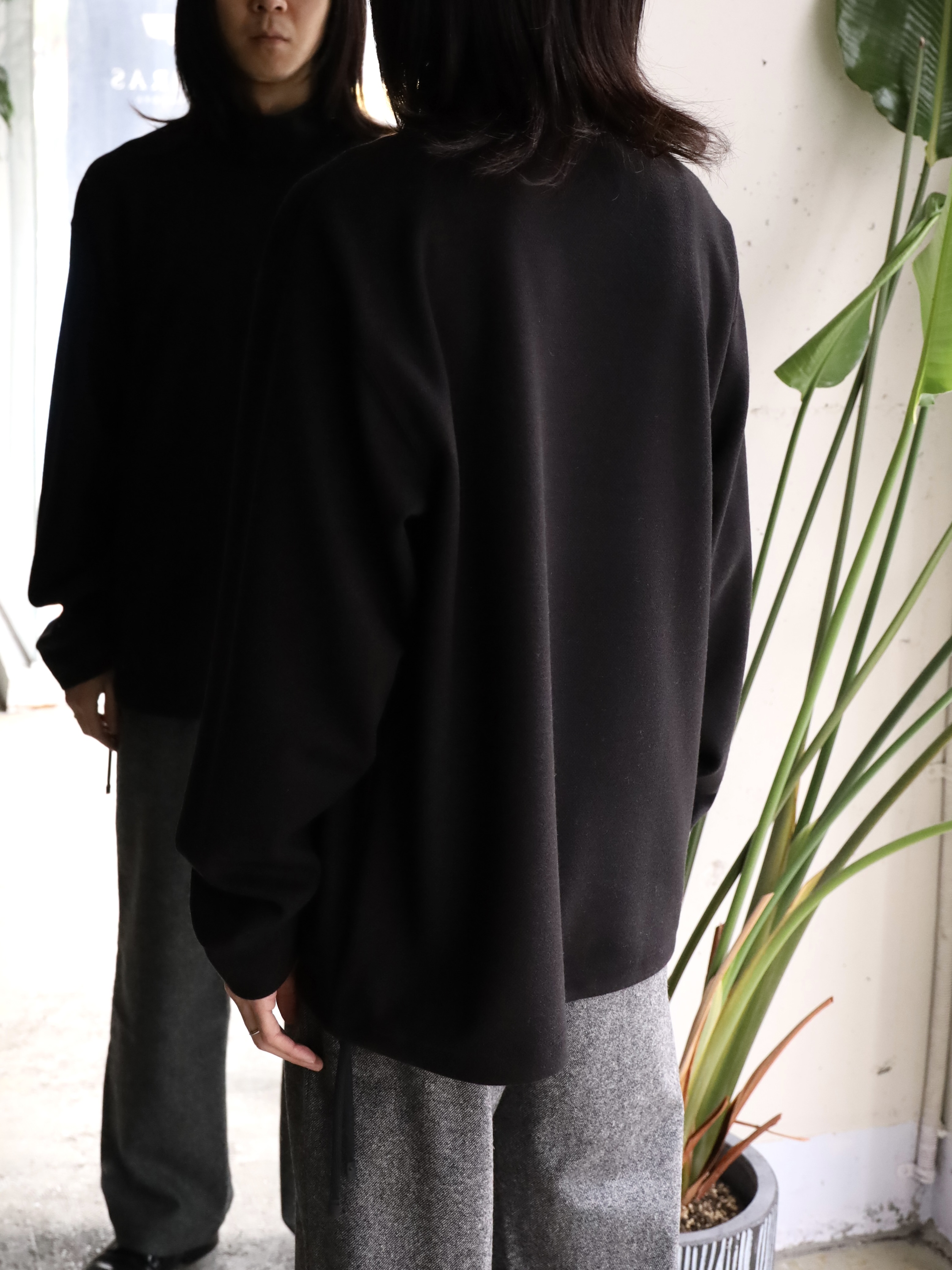 首元や袖リブなどの締め付けを緩くすることでリラックスした雰囲気に仕上げた1着。程よくゆったりとしたバランスのいいサイジング。インナーとしてはもちろん、一枚でのご着用もおすすめです。裾には絞りを配しており、シルエットを変えての着用も楽しめます。高いストレッチ性としなやかな風合いが特徴の生地を使用し、立体的なシルエットを作りだしています。