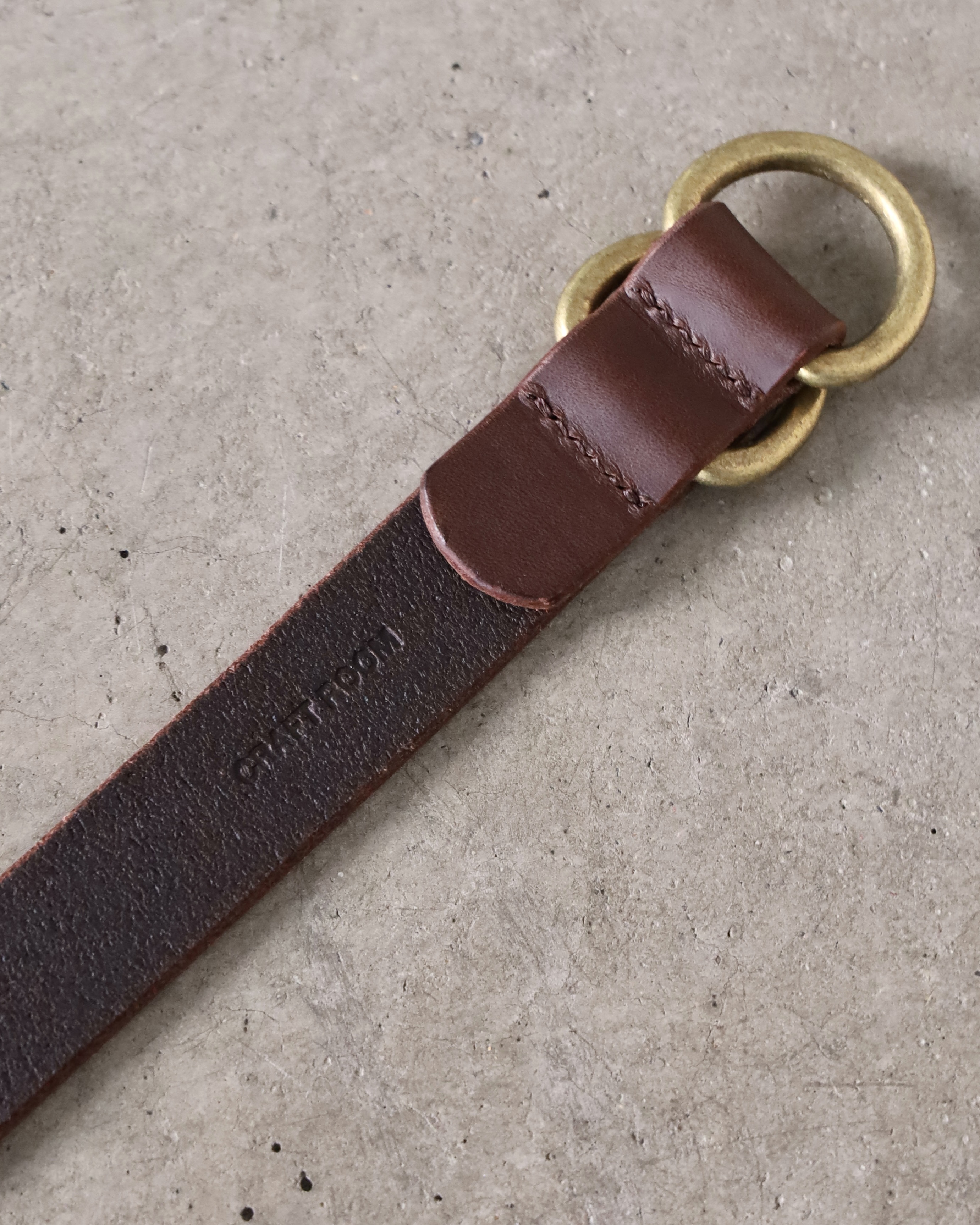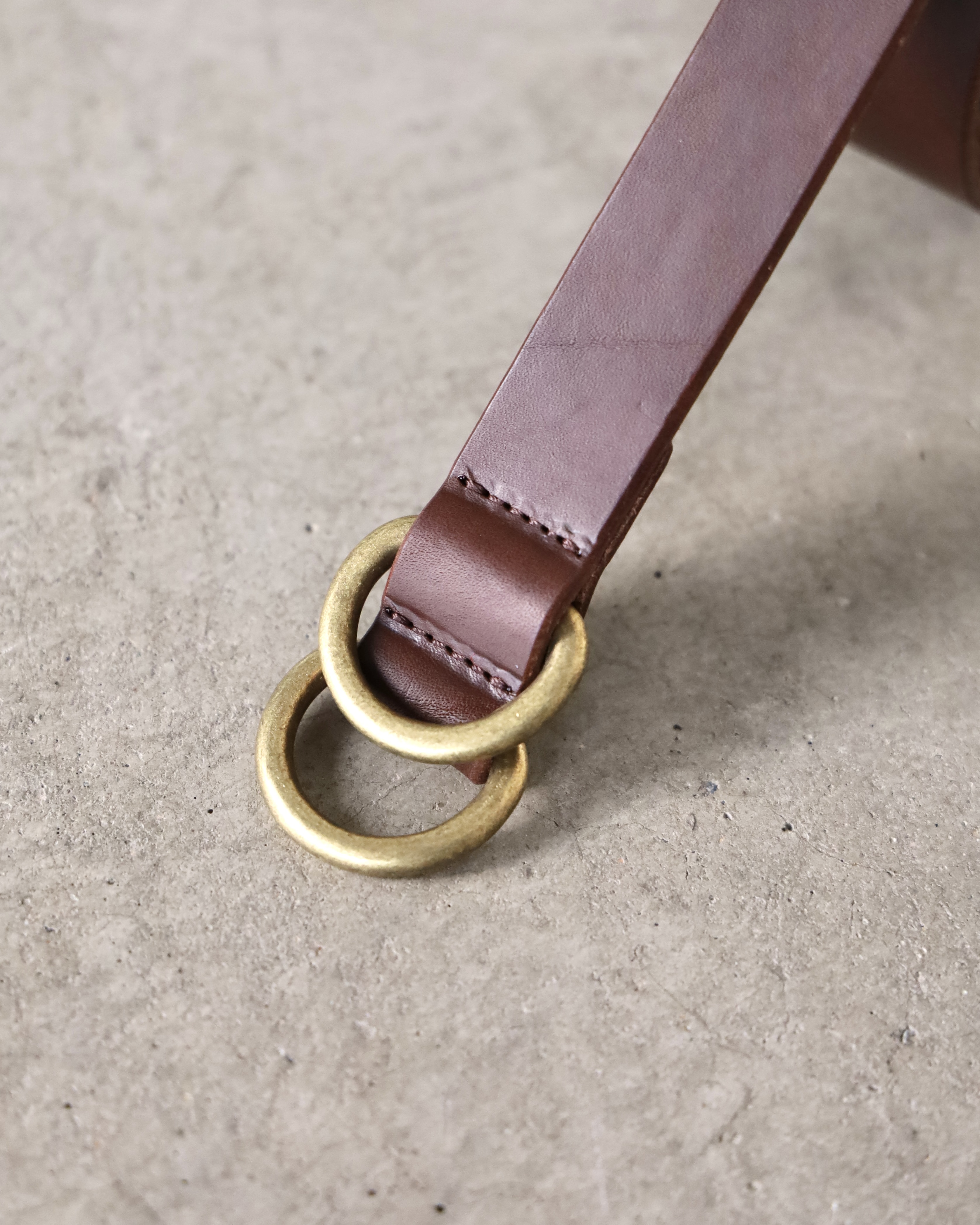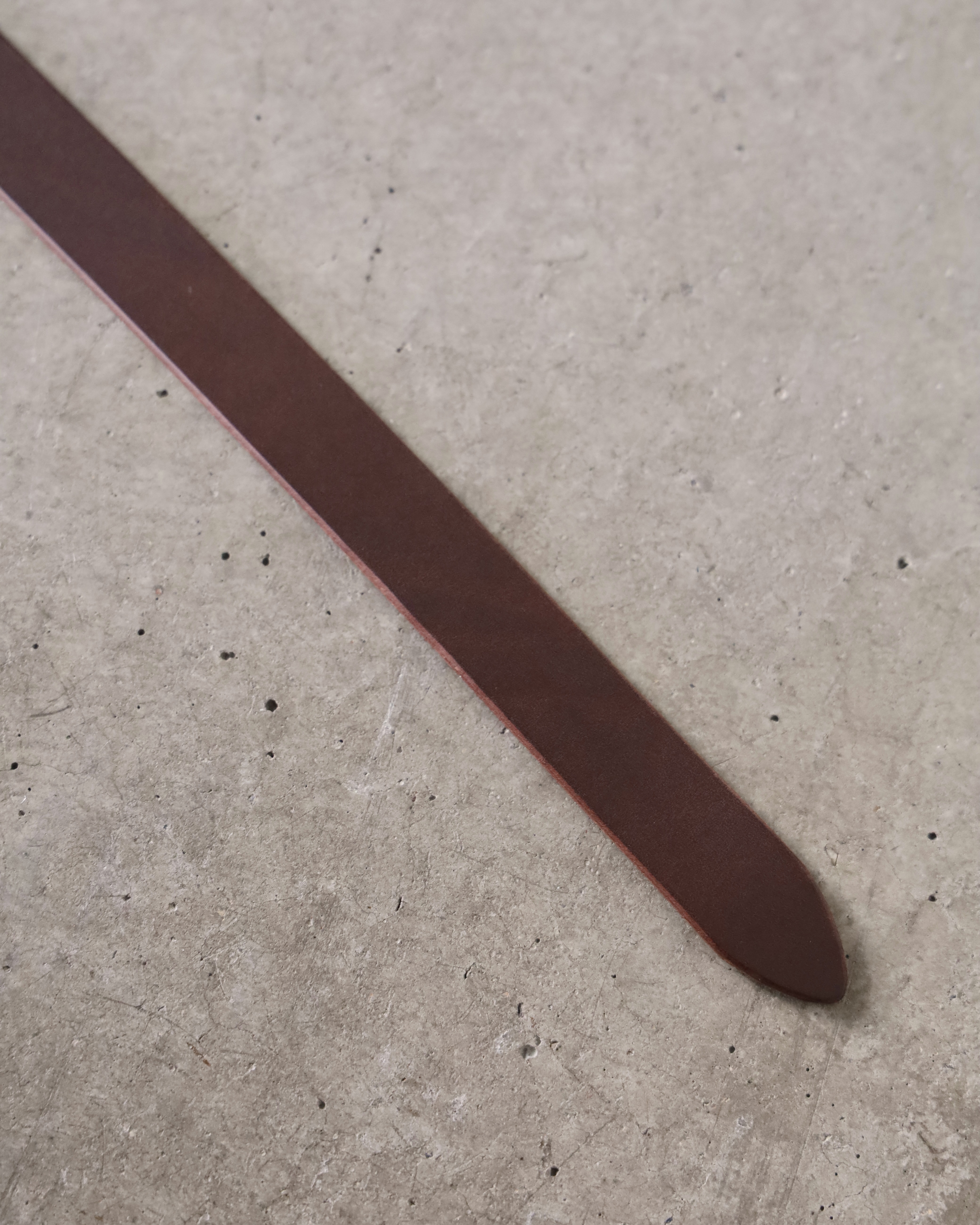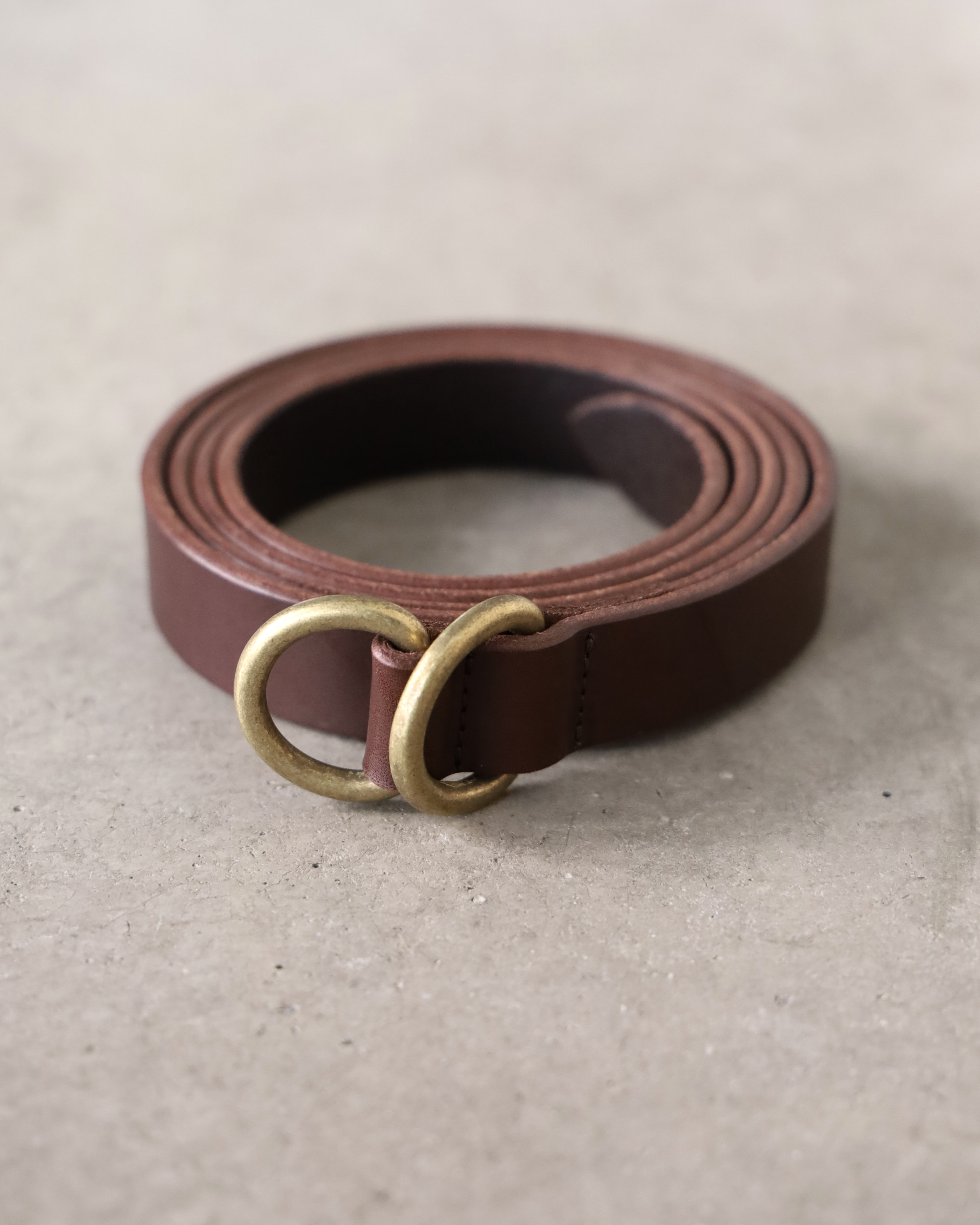イタリアはサンタクローチェ地区にある「Lo Stivale」社が製造する、植物タンニン鞣し、染料仕上げ、バケッタ製法によりオイルがしっかりと入ったイタリアンレザーを使用したリングベルト。長めのデザインなのでウエストから垂らしていただいて装いにアクセントをつけることも可能。キメ細やかな表面にオイルの効いた重量感ともっちりとした質感が特徴です。カジュアルスタイルからドレススタイルまで様々な服装に合わせていただきやすいシンプルなルックス。使い込むほどに馴染み、経年変化を感じていただけます。