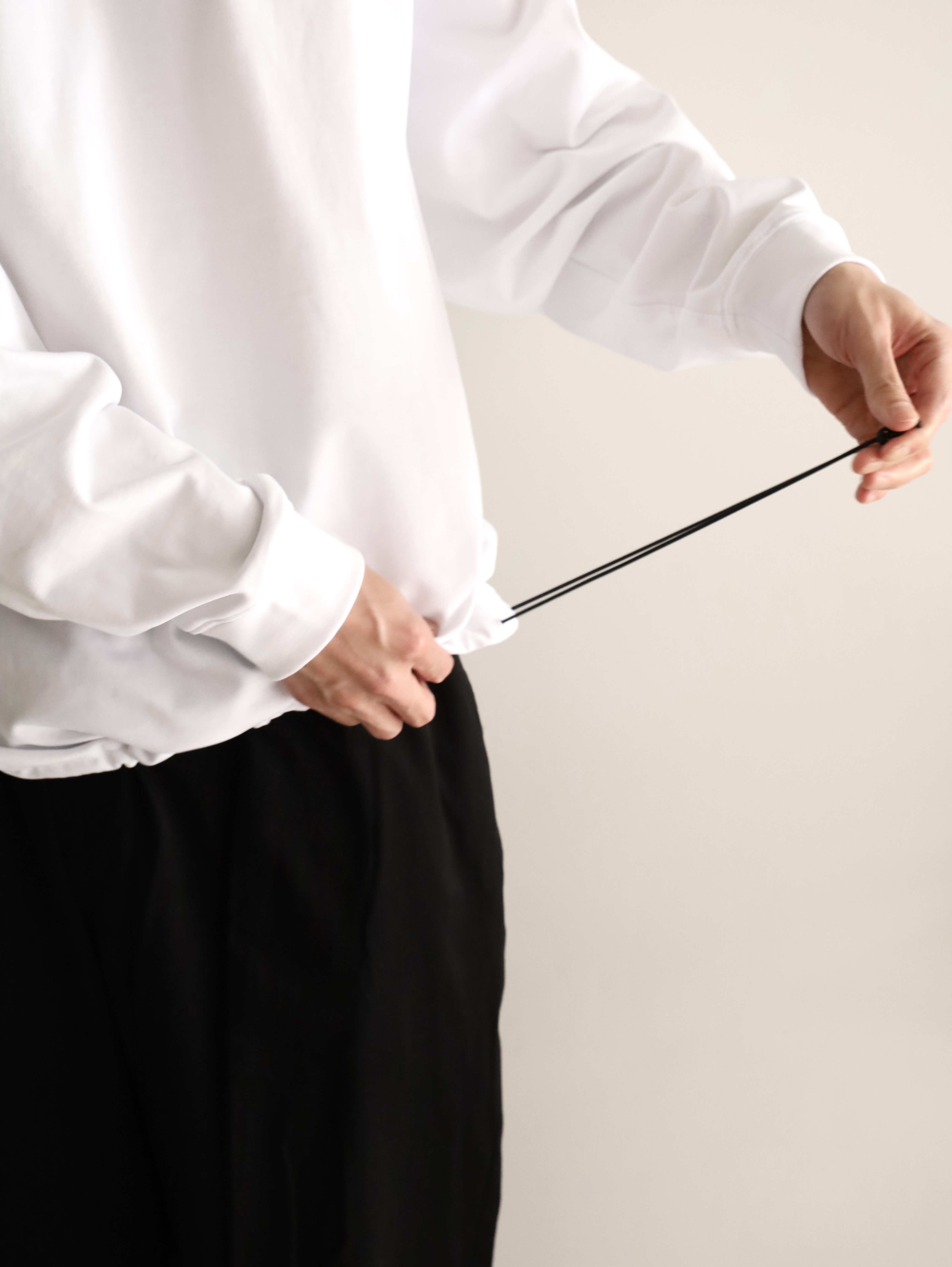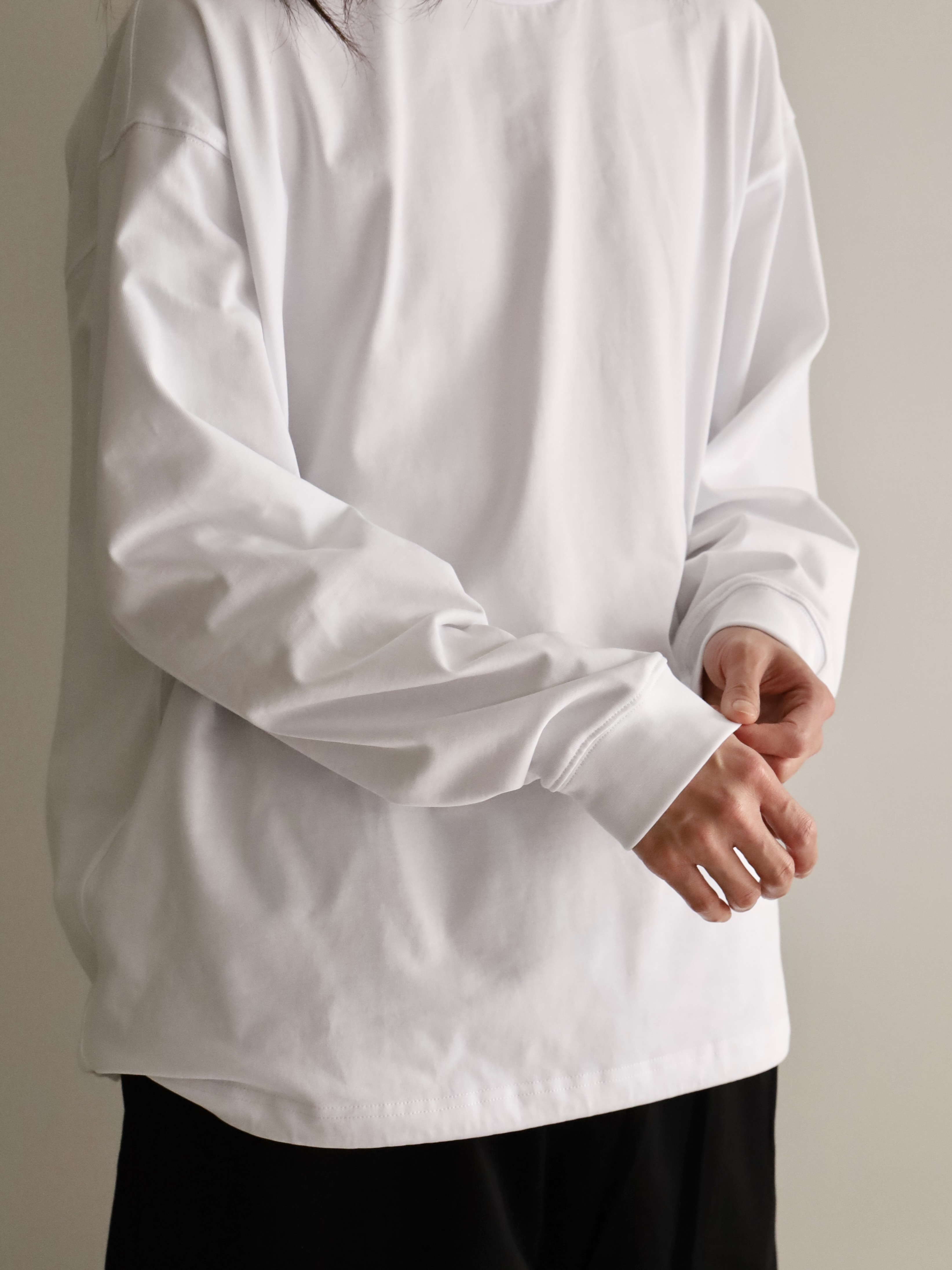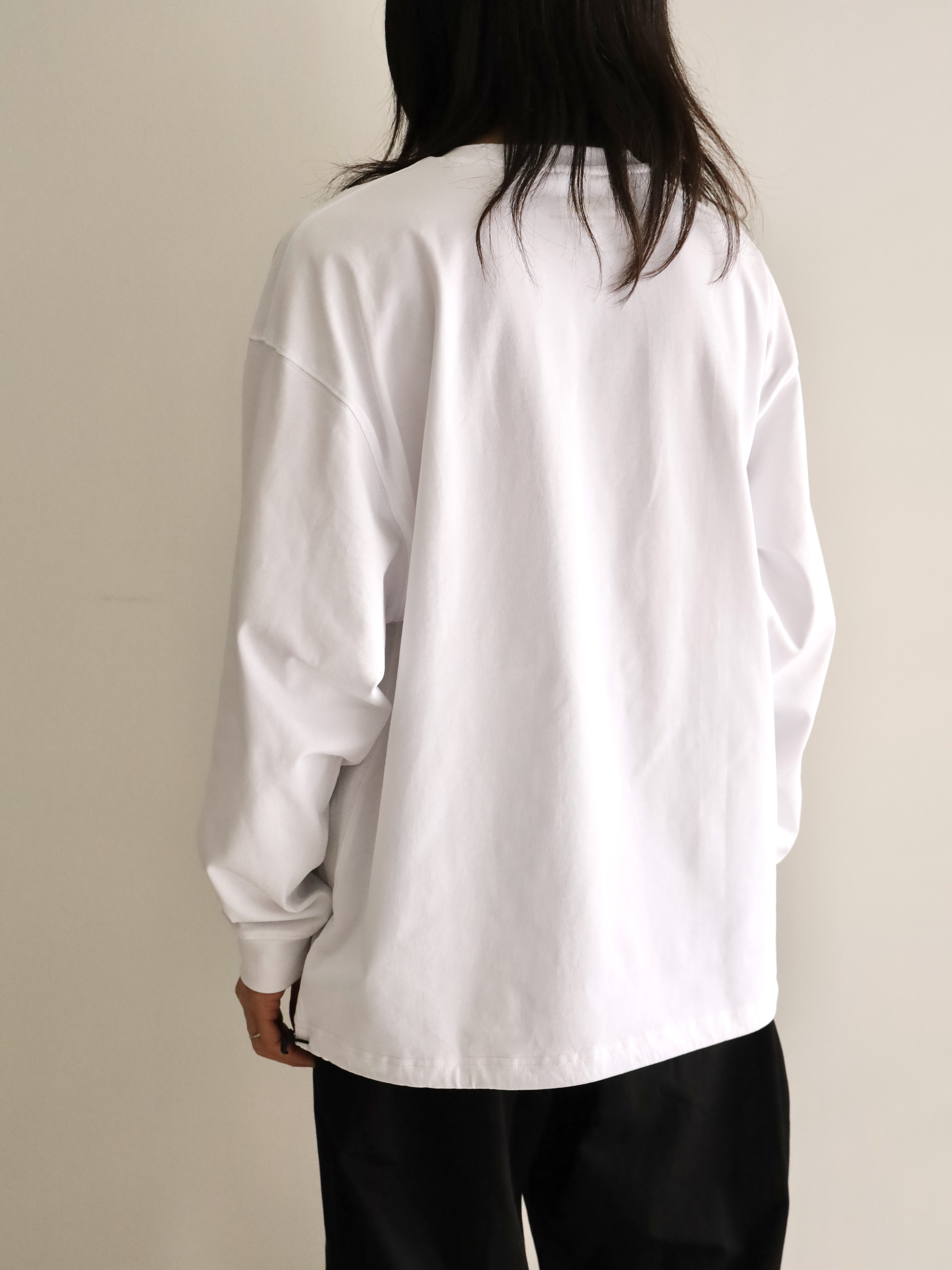アウトドアブランドの背景を感じさせながらも、あくまで日常のスタイルを軸に設計された1着。素材には厚手のコットン 100%を採用。表面には毛焼き加工を施すことで、カジュアルな中にもクリーンで落ち着いた表情を持たせました。しっかりとした生地感がありながら、肌触りは滑らかで、季節の変わり目にも心地よく着用できます。裾に配したドローコードは、シルエットに変化を加えるためのディテール。絞ることでレイヤード時のバランスを整えたり、スタイリングにさりげないアクセントを添えることができます。1枚着としても、インナーとしても成立する設計は、街の日常に寄り添う実用性の高さを備えています。カラーは、クリーンな「WHITE』柔らかなニュアンスの『FOGBROWN』引き締まった印象の『CHARCOAL』の3色展開。パンツとの相性も考慮した、スタイリングの幅を広げるラインナップです。